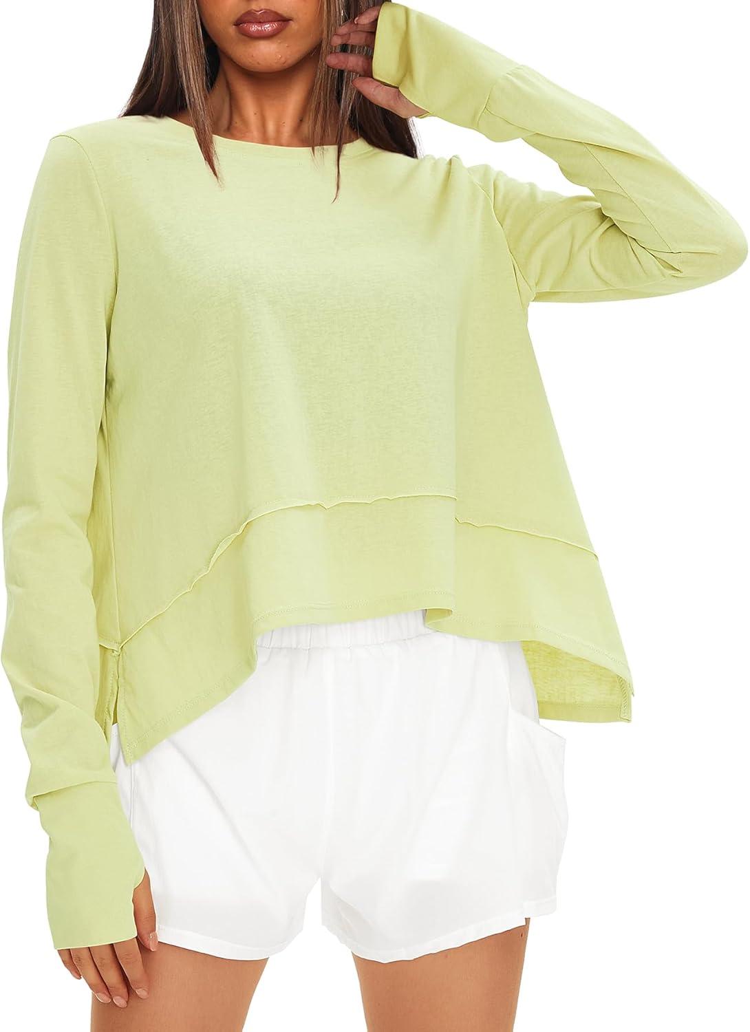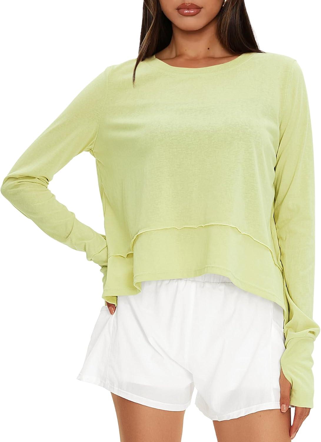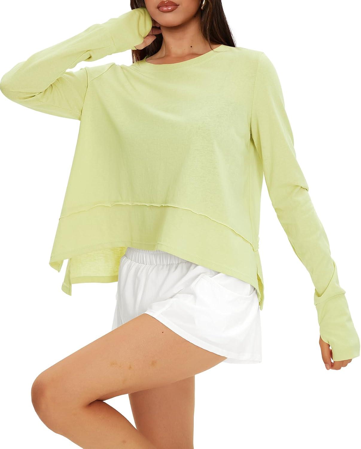 Darong Cotton Long Sleeve Workout Shirts for Women Loose Fit Athletic Yoga T-Shirts Casual Slouchy Crop Running Tees(Light Green)