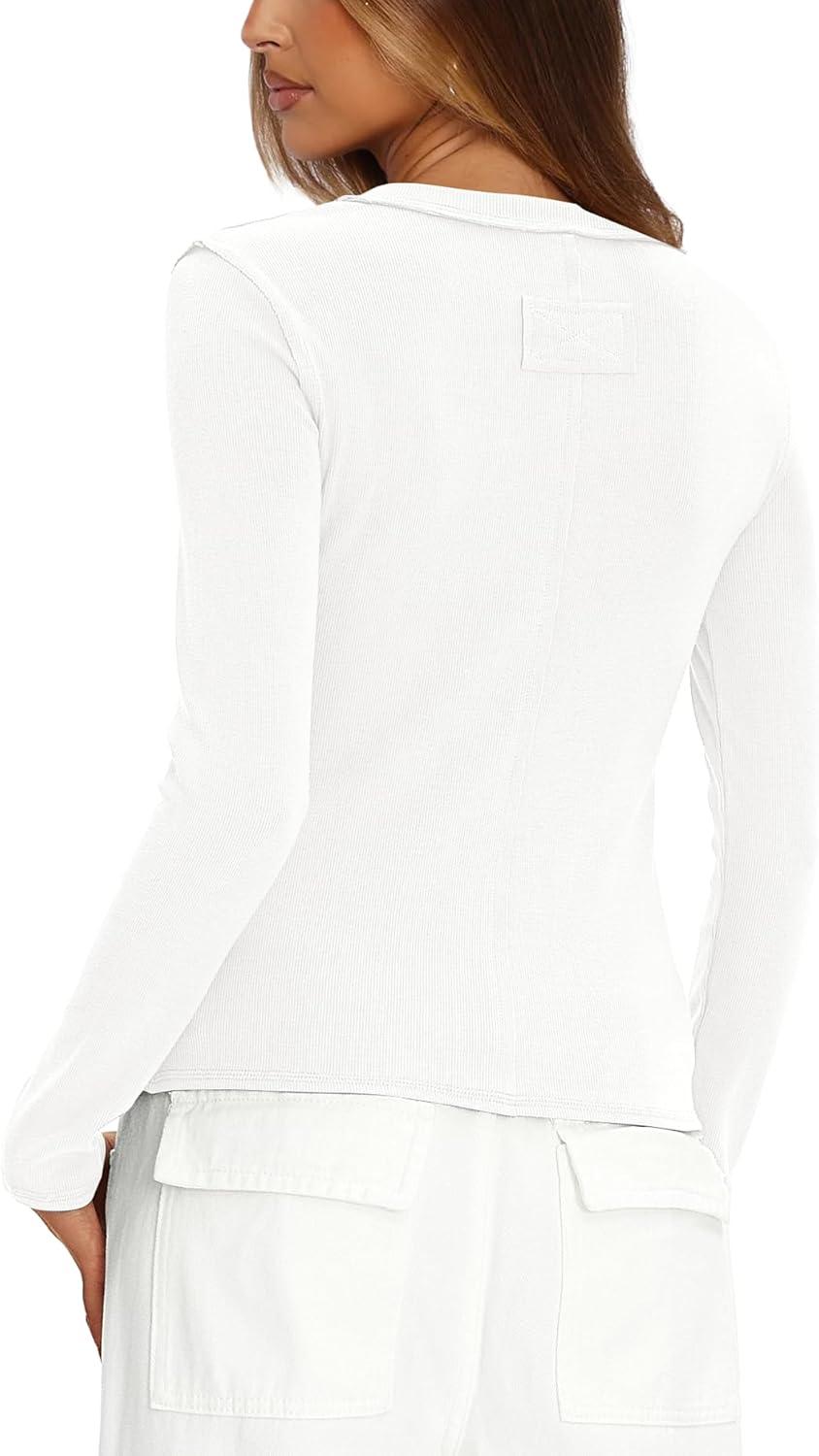 Darong Long Sleeve Tshirts for Women Fall Fashion V Neck Basics Crop Tops Slim Fitted Y2K Tops Ribbed Outfits Clothes(White)