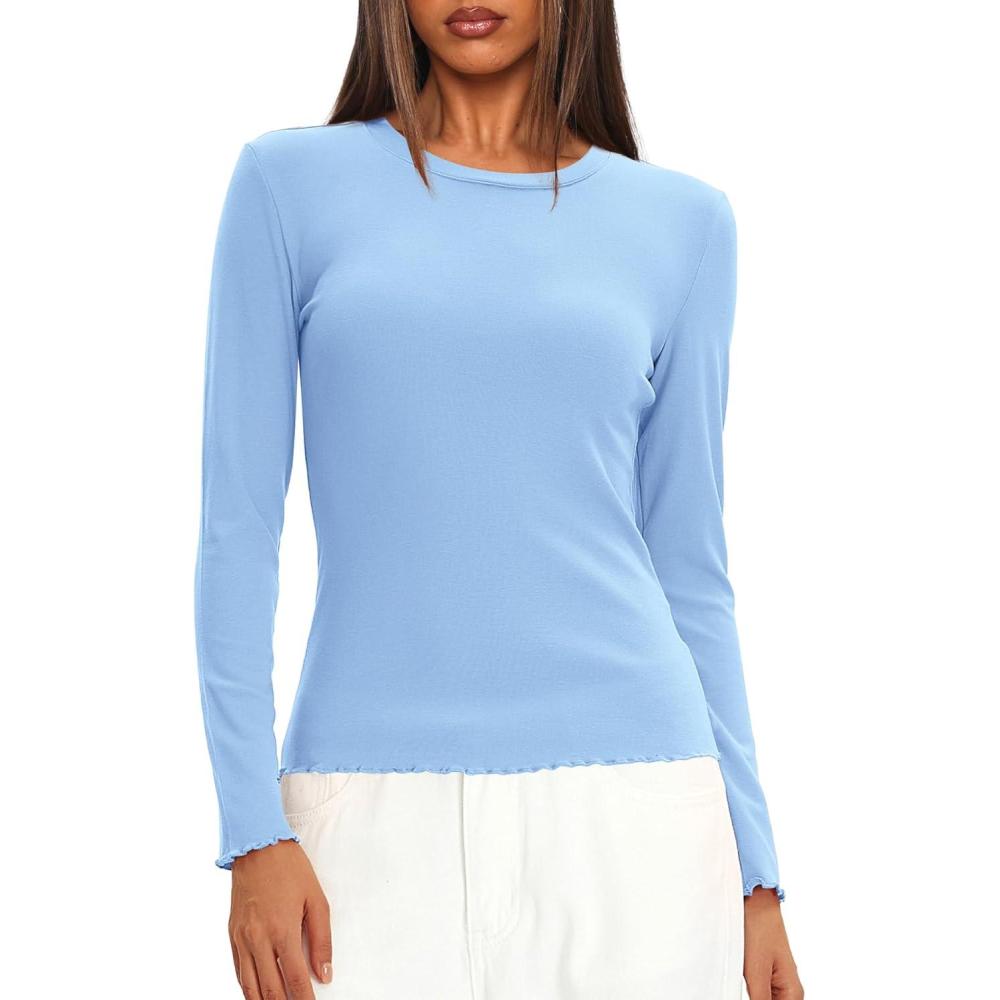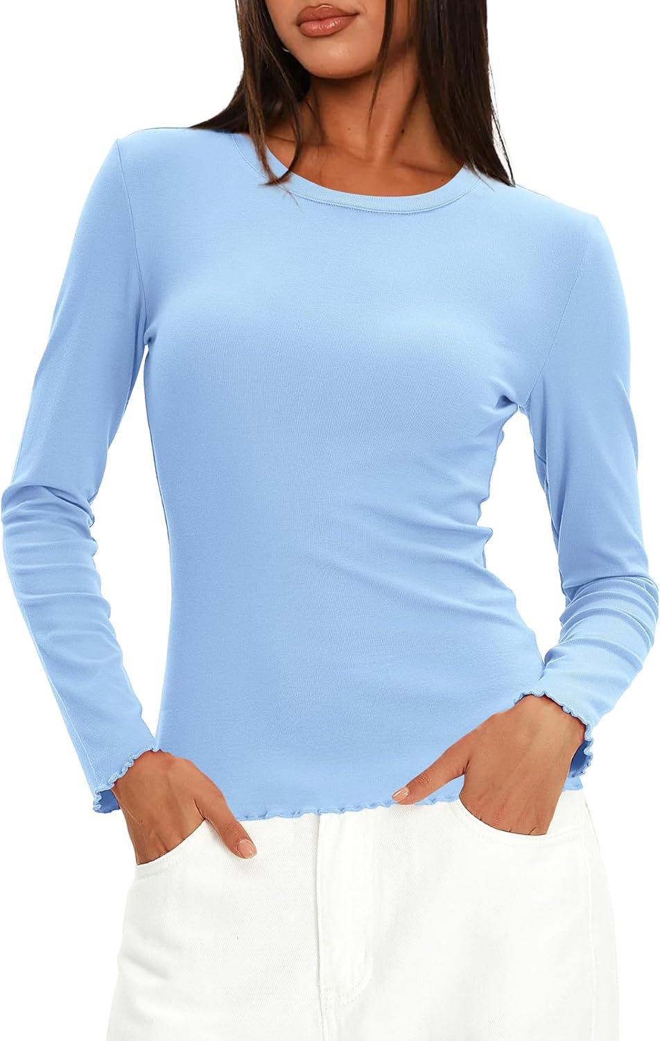 Black Tops For Women Trendy, Army Green Shirt Women, Beige Fall Tops For Women, Light Blue Womens Tops Dressy Casual, Brown Long Sleeve Tops, Grey Shirts For Women