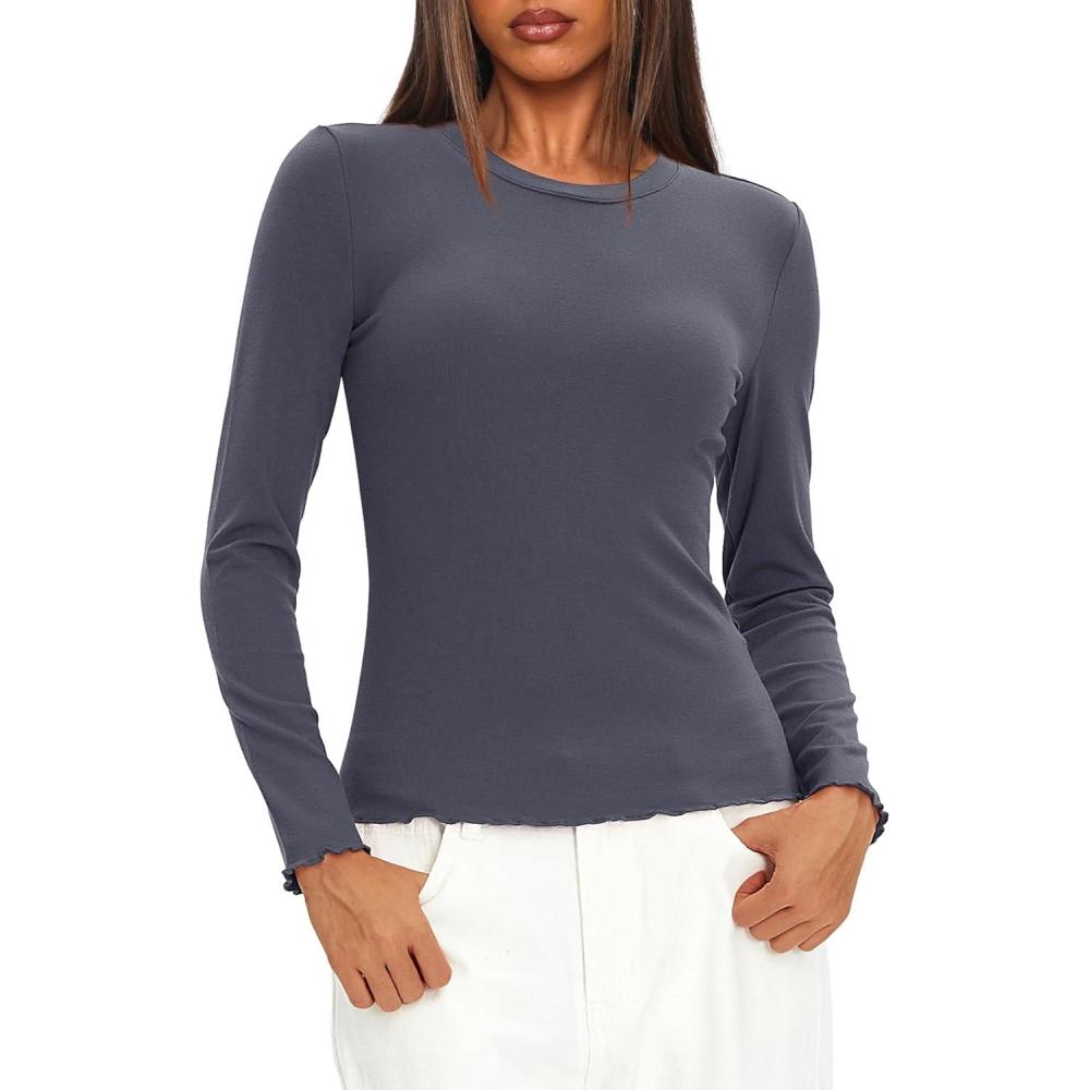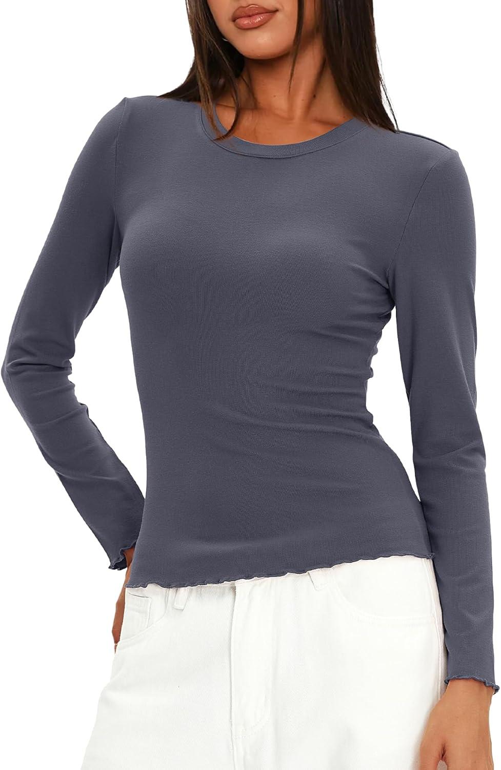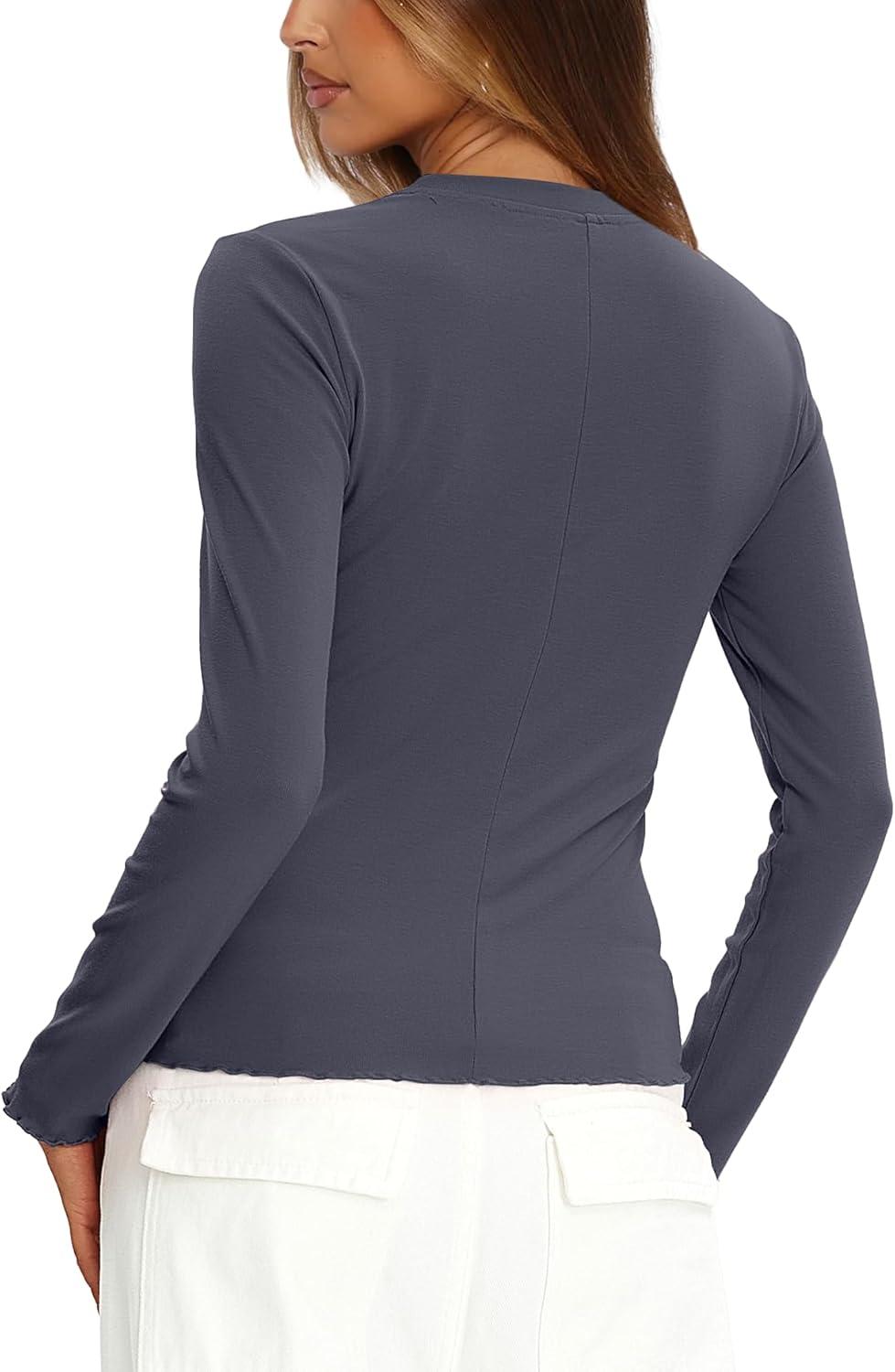 Black Tops For Women Trendy, Army Green Shirt Women, Beige Fall Tops For Women, Light Blue Womens Tops Dressy Casual, Brown Long Sleeve Tops, Grey Shirts For Women