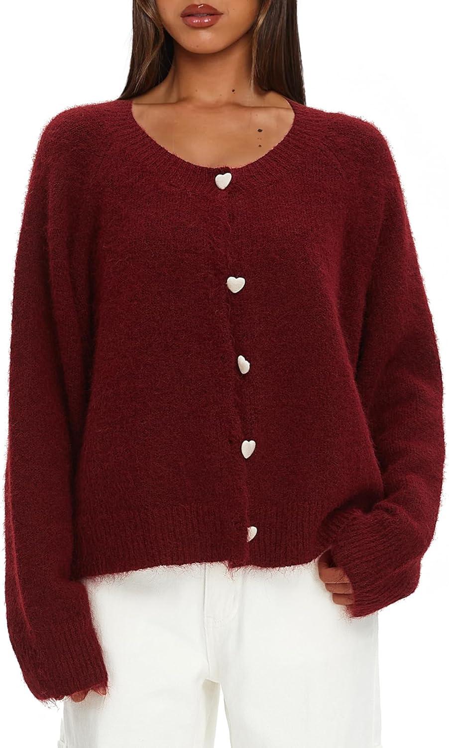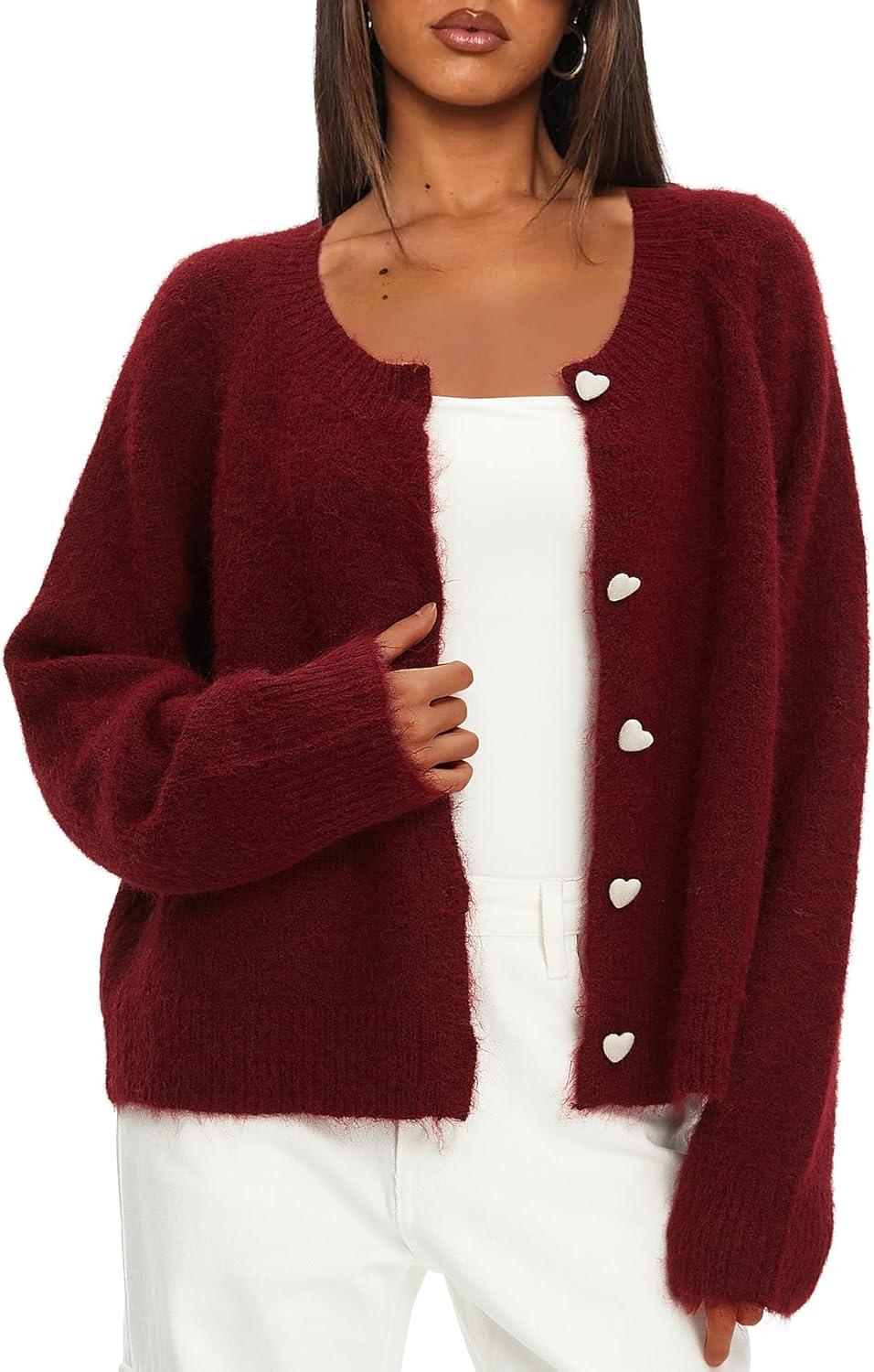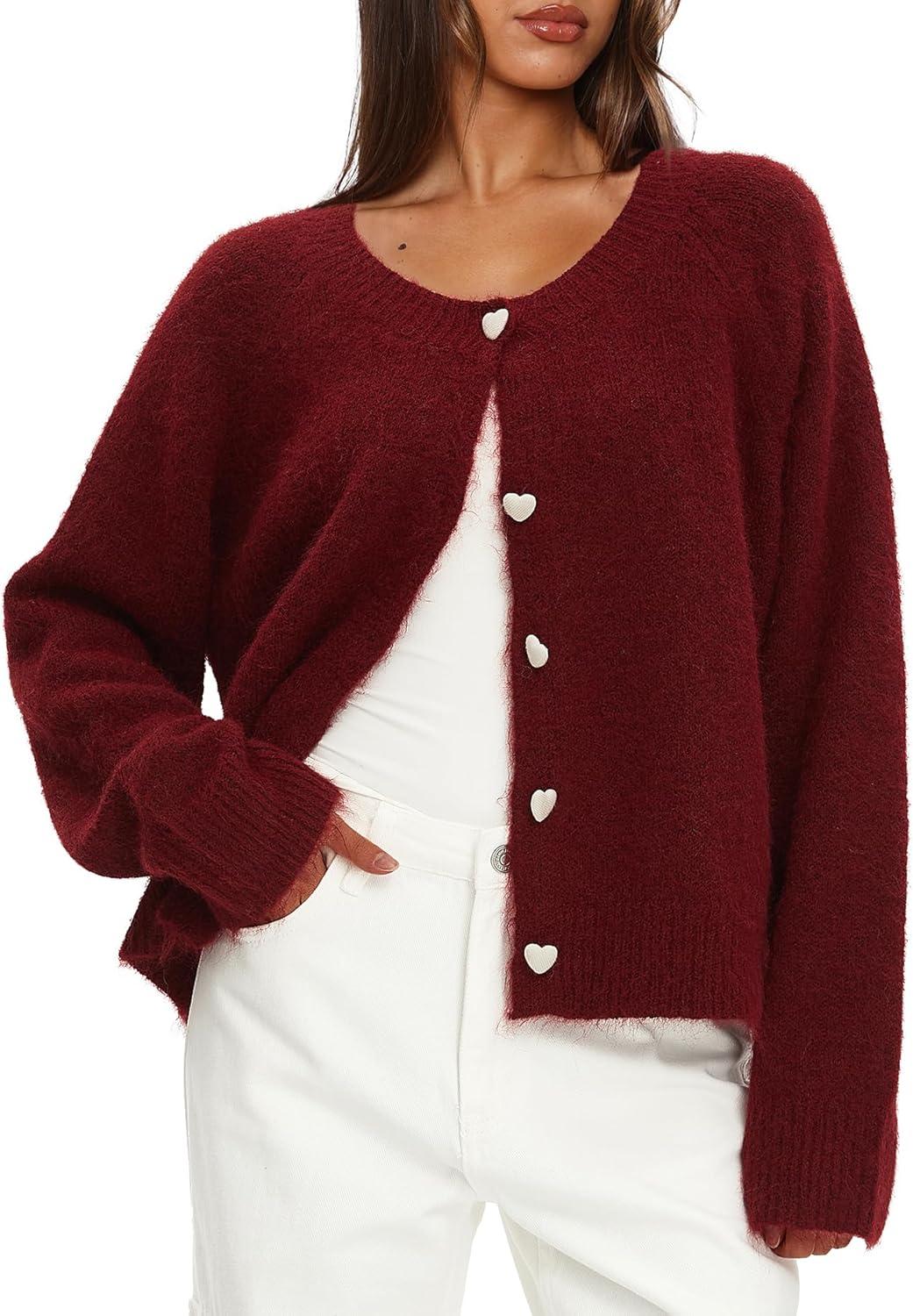 Darong Womens Cardigan Sweaters Lightweight Button Down Long Sleeve Knit Sweater Y2k Fall Outfits Fashion Clothing 2025(Red)