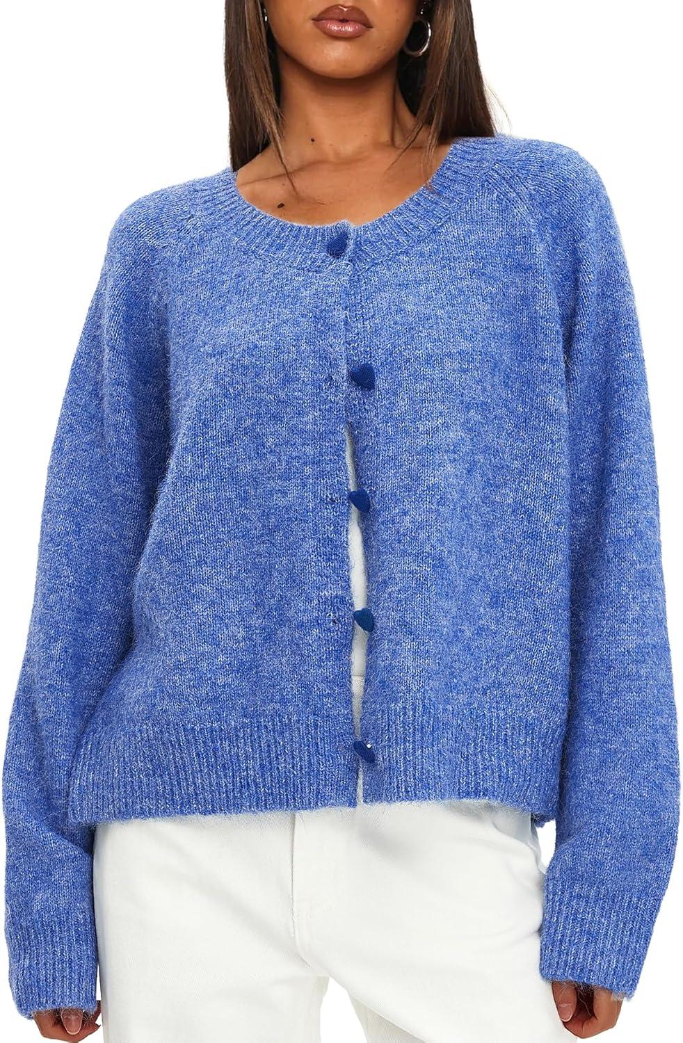 Darong Womens Cropped Cardigan Sweaters Long Sleeve Knit Y2k Button Down Fall Outfits Fashion Clothing 2025(Blue)