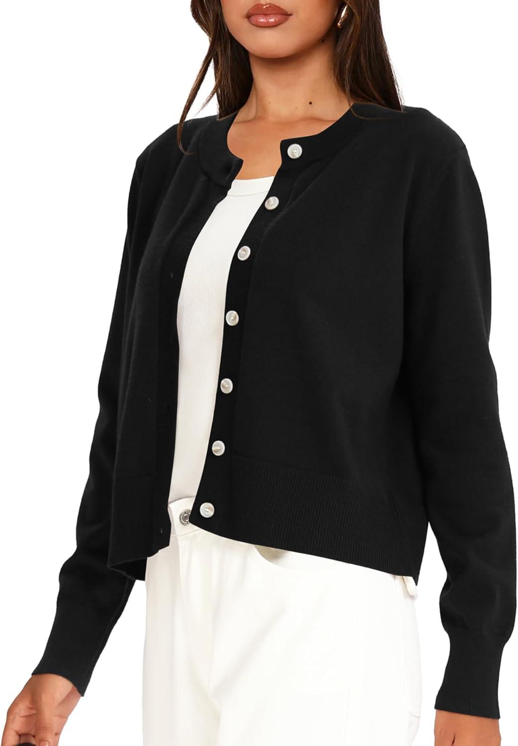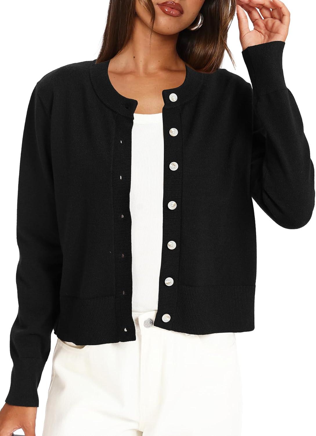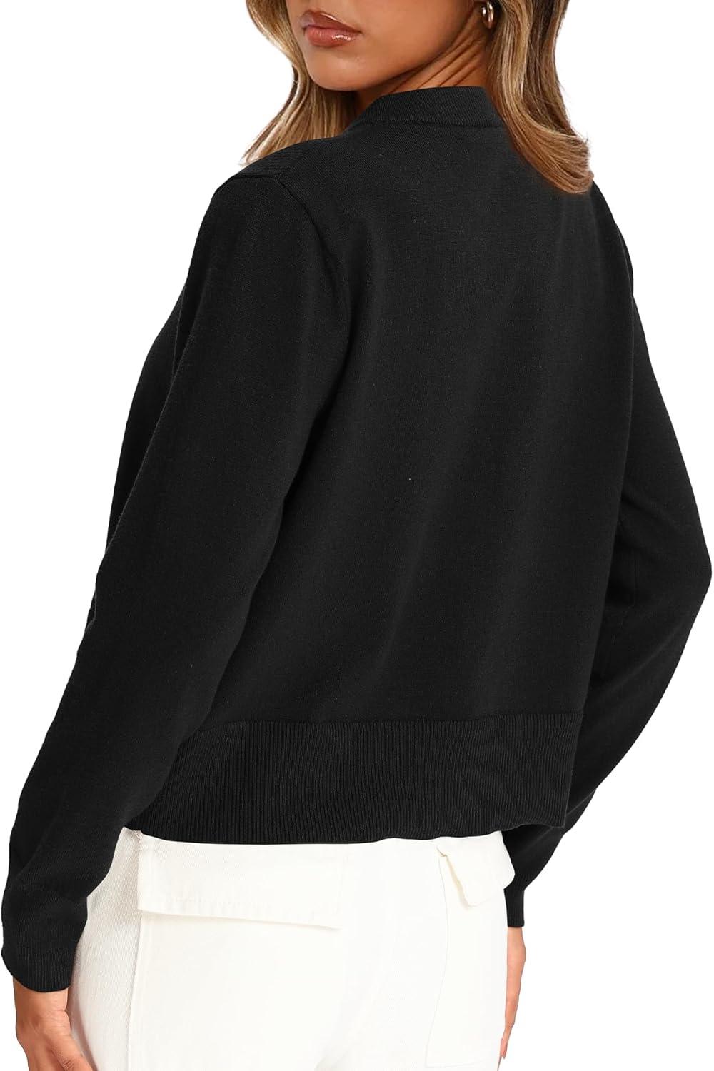 Darong Womens Casual Cropped Cardigan Lightweight Button Down Long Sleeve Knit Sweater Fall Outfit Top(Black)